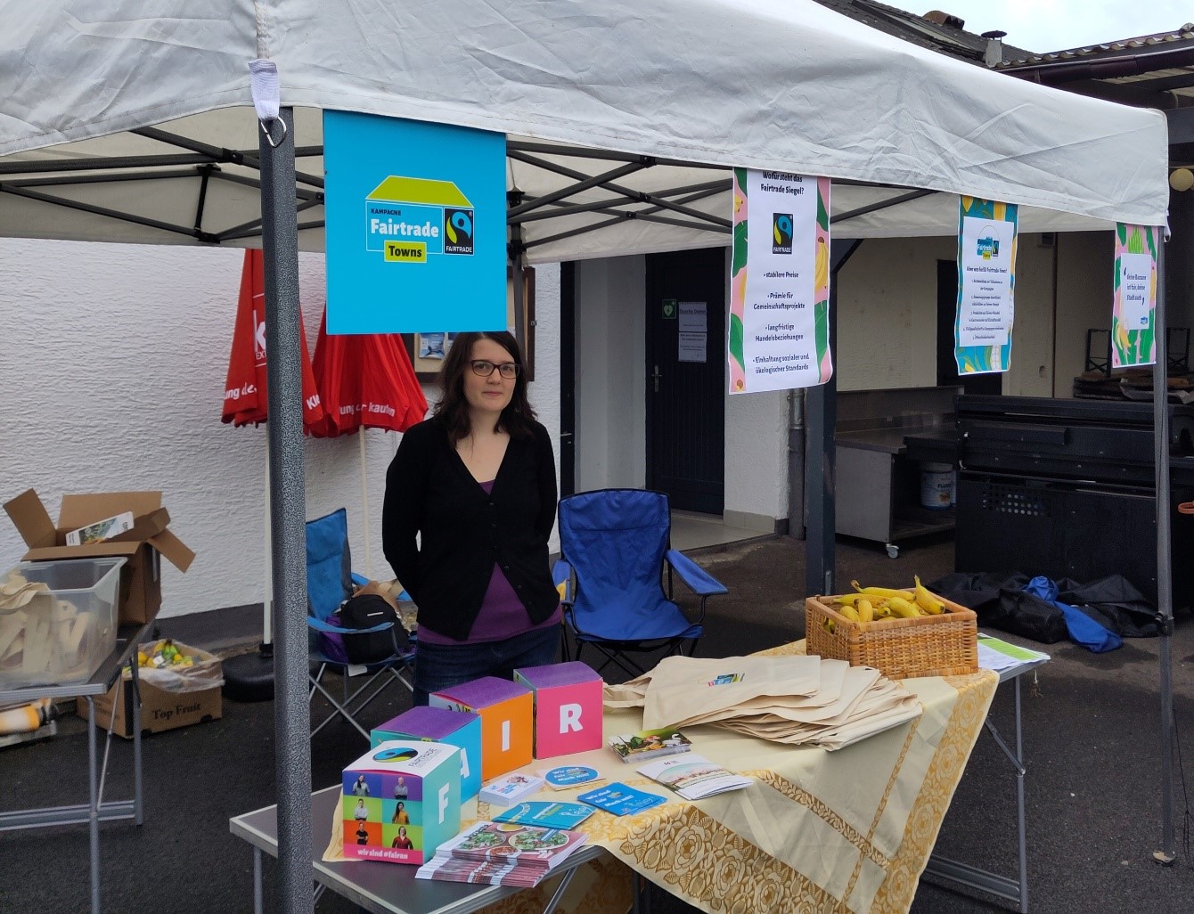 Klimamanagerin Jennifer Höltge am Fairtradestand
